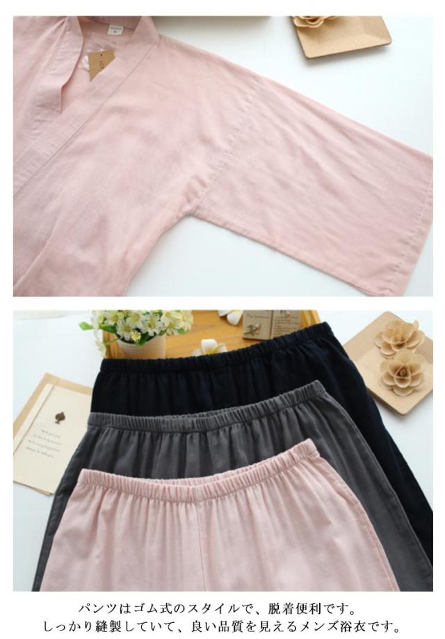 パジャマ メンズ ねまき レディース ルームウェア 和風 甚平 浴衣 二重 ガーゼ 前開き 五分袖 通気性 吸汗吸湿 綿 コットン 女性 寝間着 部屋着 作務衣 お風呂 旅館 浴衣 ホテル 上下セット カップル 男女兼用 春 夏 秋