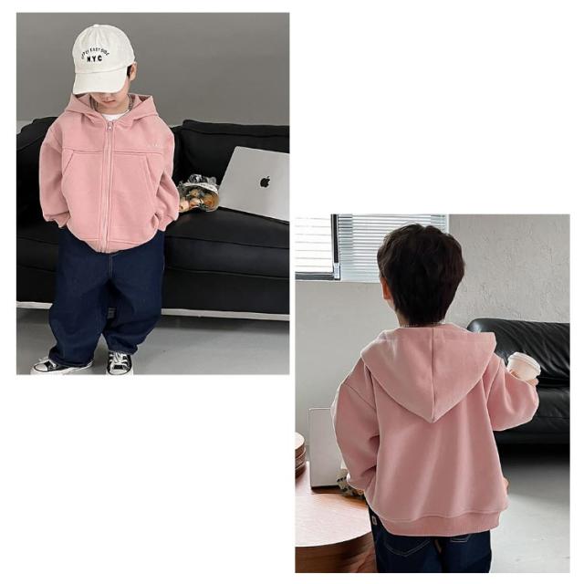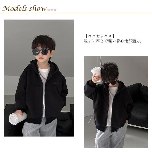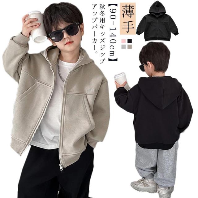 スウェット パーカー キッズ 子供服 ジップアップ パーカー 春 秋 アウター 薄手 ライトアウター 女の子 男の子 小学生 中学生 無地 シンプル ジップパーカー 90 100 110 120 130 140 韓国 子ども服 防寒 保温 通学 ピンク 黒 ベージュ 【送無】