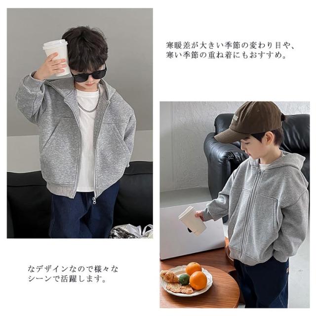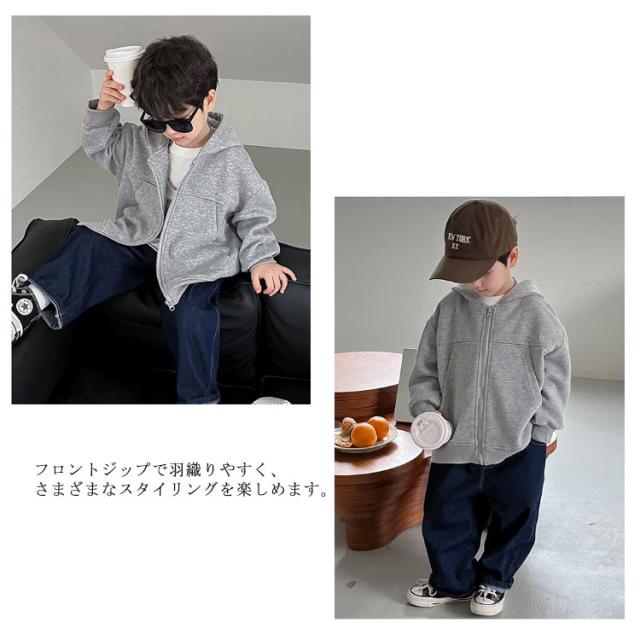 | 秋冬用キッズジップアップパーカー。【90-140cm】【ユニセックス】 程よい厚さで軽い着心地が魅力。 程よいゆとりを持たせたシルエットでリラックス感を演出。 フロントジップで羽織りやすく、さまざまなスタイリングを楽しめます。 袖口、裾はリブ仕様で伸び、風の侵入を防止 寒暖差が大きい季節の変わり目や、寒い季節の重ね着にもおすすめ。 シンプルなデザインなので様々なシーンで活躍します。 | |