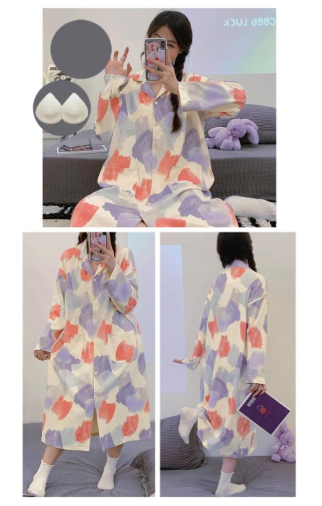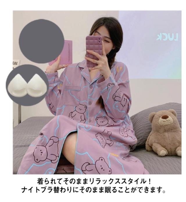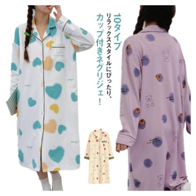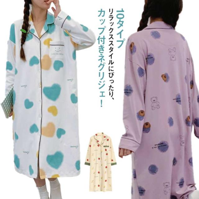 ネグリジェ カップ付き ルームウエア ワンピース レディース 長袖 部屋着 ナイトウェアパジャマ ブラトップ 型 大人可愛い カップ入り ロング インナー 大きいサイズ 柔らか かわいい 無地
