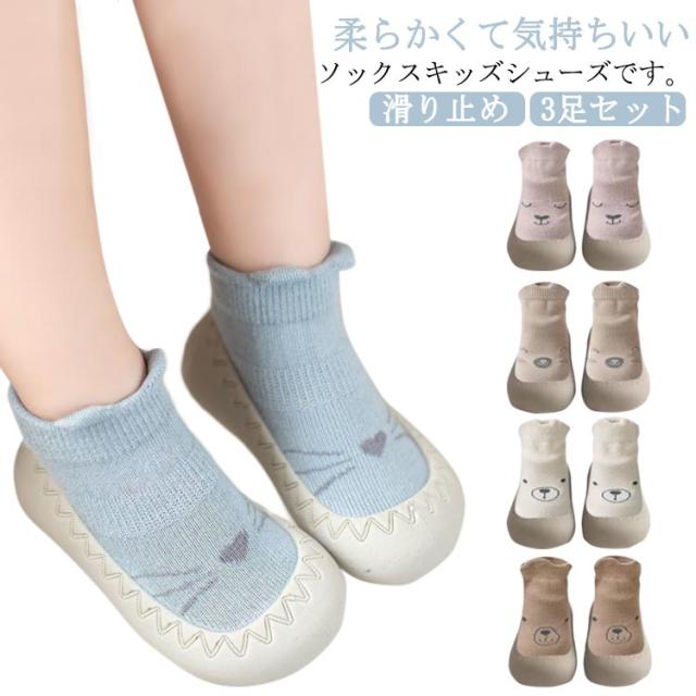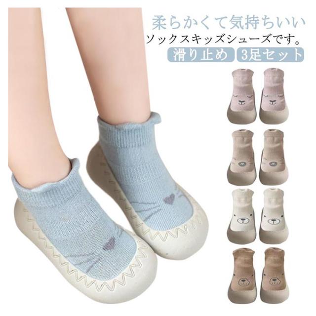 ベビー 赤ちゃん ルームシューズ 3足セット ファーストシューズ 靴下 スニーカー 男の子 女の子 新生児靴下 滑り止め 可愛い ショートソックス ソックスシューズ 幼児 室内履き 室外兼用 子供靴 幼児 おしゃれ 誕生日 出産祝い ギフト 送料無料