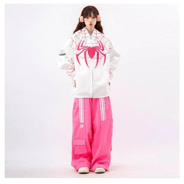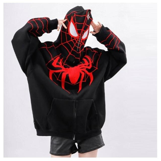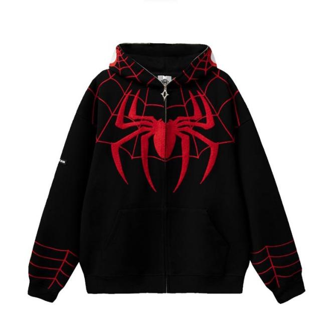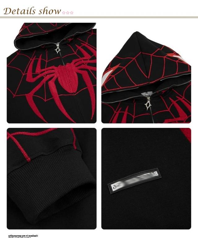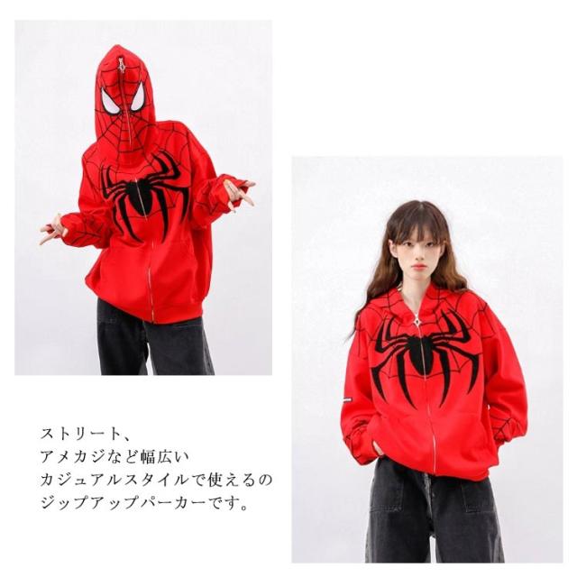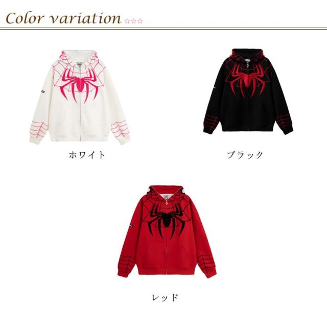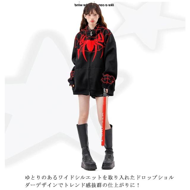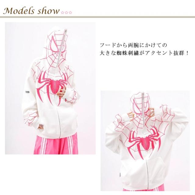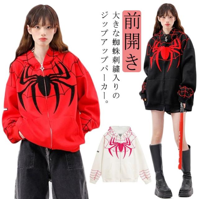 パーカー ジップアップパーカー 蜘蛛 刺? レディース スウェット トップス 長袖 スウェットパーカー フード付き ライトアウター 羽織り 春 秋 冬 クモ柄 くも 秋物 秋服 秋アウター 学生 大人 可愛い カジュアル ストリート 【送無】