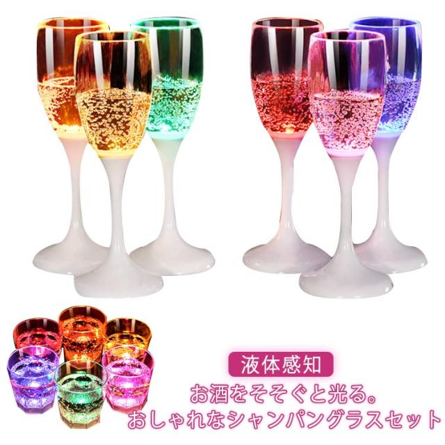 光るシャンパングラス 150ml 210ml 光るグラス 6色 6脚セット ウィスキーグラス センサーネオングラス パーティー 光る LED グラス シャンパングラス セット プラスチック カクテルグラス LEDグラス キャンプ アウトドア BBQ 結婚式 業務用