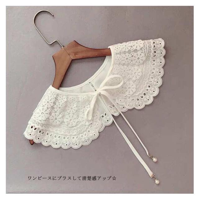 付け襟 つけ襟 レディース レース フリル襟 丸襟 角襟 総レース パール ボン紐 リボン結び 刺繍 クルーネック レイヤード カジュアル 重ね着 お洒落 可愛い 薄手 オールシーズン お出かけ 通勤 通学 清楚 きれいめ 大人 アクセサリー