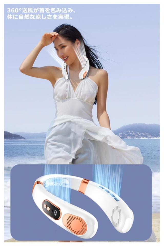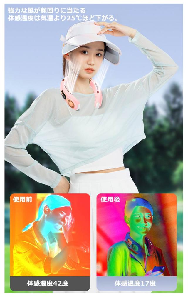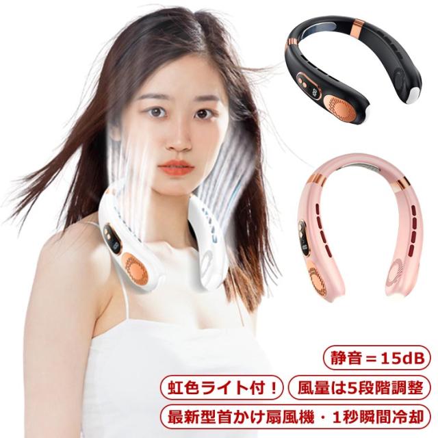| 【最新型首かけ扇風機・1秒瞬間冷却】 【虹色ライト付!】 【風量は5段階調整】 【静音=15dB】 | |