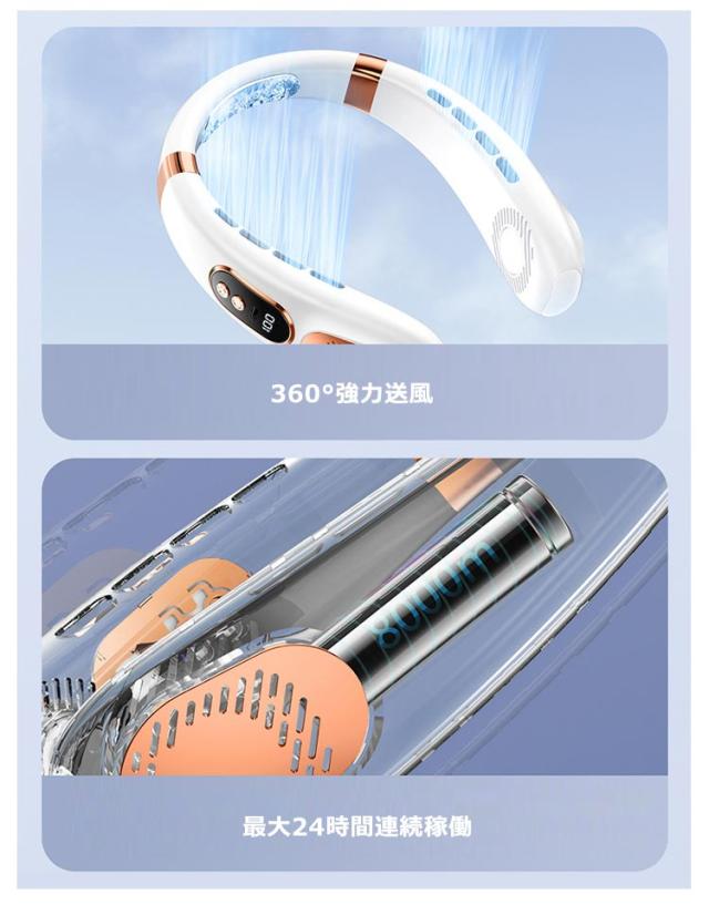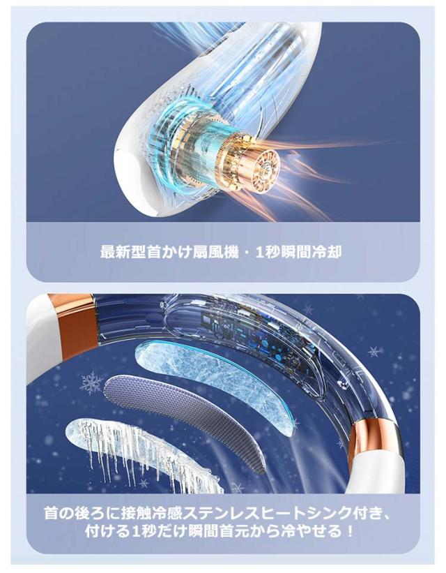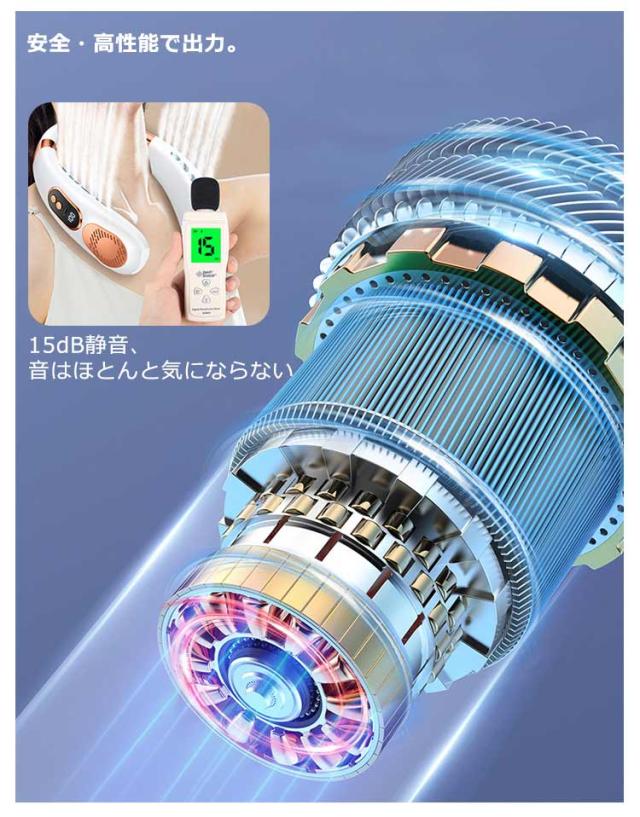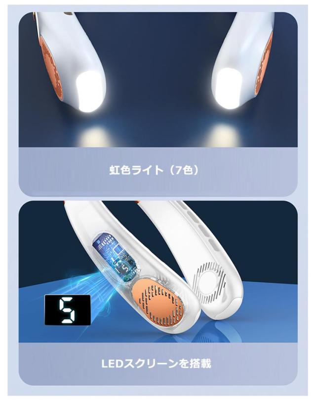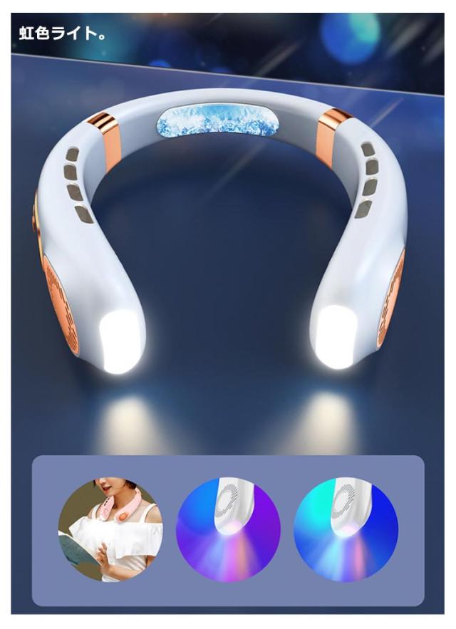 扇風機 首かけ 羽なし 軽量 静音 15dB 充電式 ネッククーラー 首掛け扇風機 ネックファン 冷却プレート 5段階風量 虹色ライト付 1秒瞬間冷却 大容量 静音 軽量 最大24時間動作 冷感グッズ 首かけ扇風機 ミニ扇風機 USB充電式 持ち運び ポータブルファン高温対策 室外作業