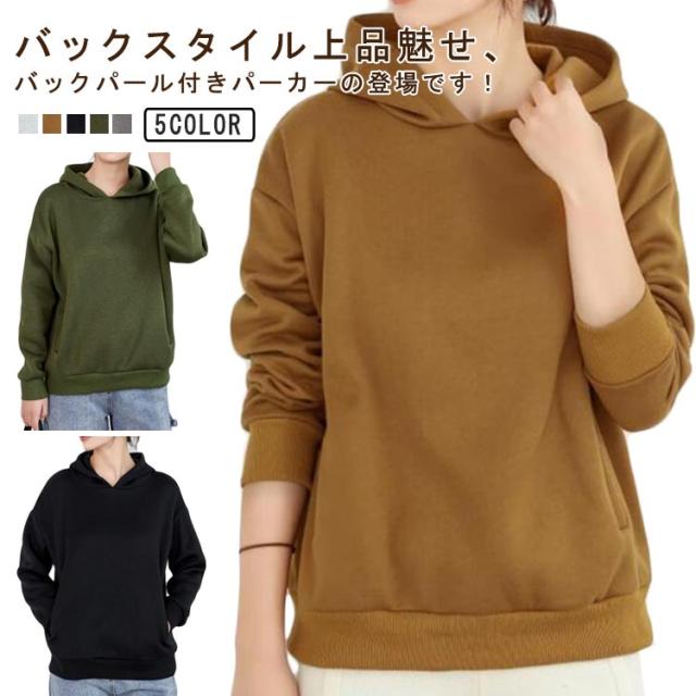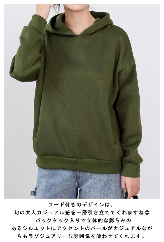 パーカー レディース フード付き 長袖 パール 大人可愛い 秋冬 ゆったり プルオーバー 無地 シンプル トップス 大人 女性 カジュアル 厚手 春 トレーナー 大きいサイズ スウェット きれいめ 20代 30代 パール 通勤 通学 重ね着 あったか ギフト 送料無料