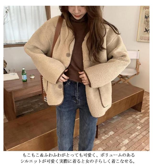 ジャケット ショート ボア ジャンパー レディース 冬 秋 ブルゾン アウター ノーカラー もこもこ 防寒 厚手 おしゃれ 羽織り 大きいサイズ オーバーサイズ 大人 カーディガン カジュアル