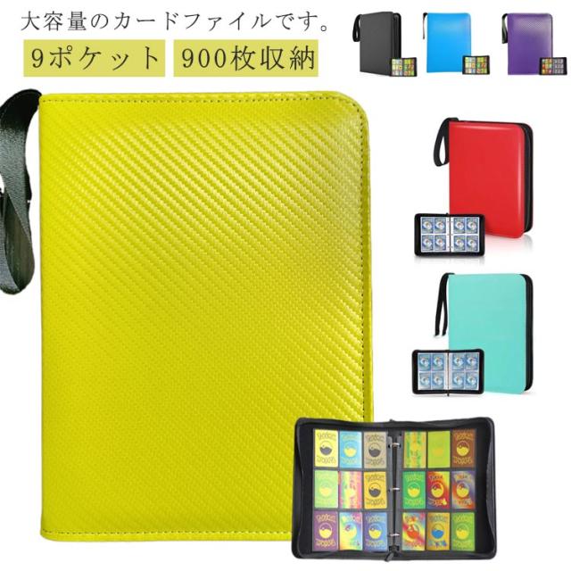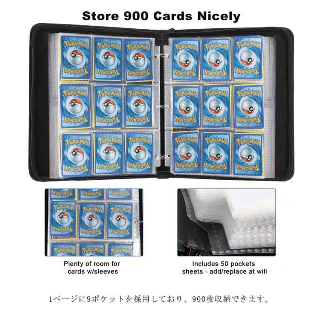 カードファイル トレカファイル 900枚収納可能 両面収納 ファスナー開閉 ハンドストラップ付き 大容量 9ポケット 50ページ トレカケース カード収納 持ち運び
