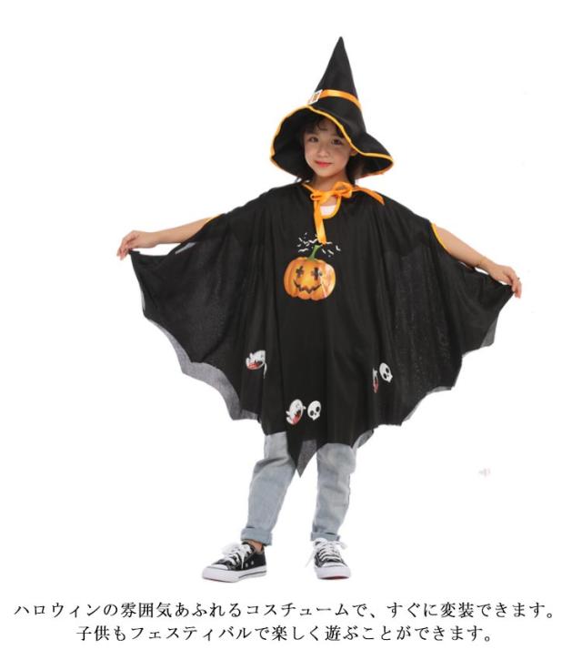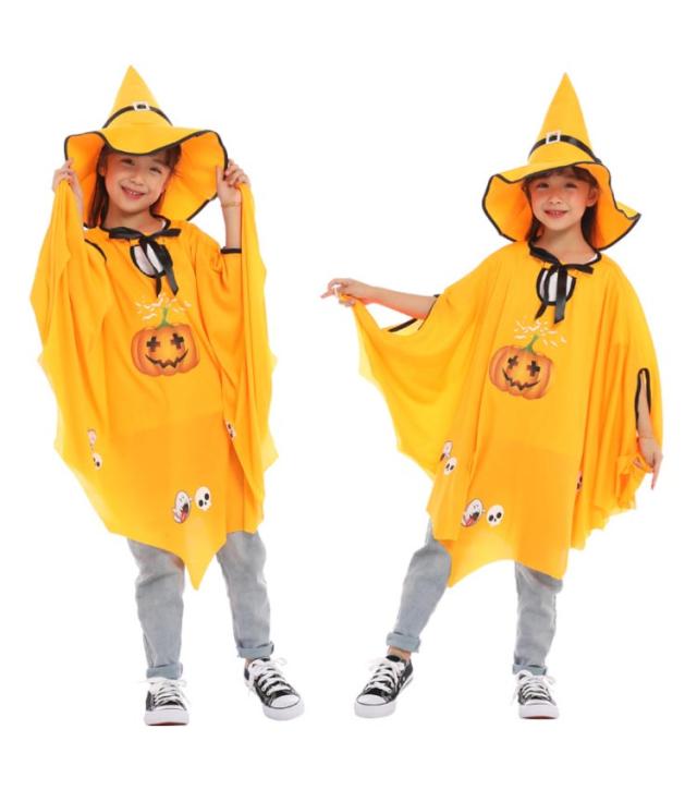 お得な2着セット!ハロウィン コスプレ衣装 子供 女の子 男の子 かぼちゃ 魔法使い 仮装 ケープ 帽子 魔女 キッズ パーティー 変装 簡単 ドレス カボチャ こども マント 子ども 可愛い 小学生 魔女 コスチューム キッズ ハロウィーン 90 100 110 120 130 140 150