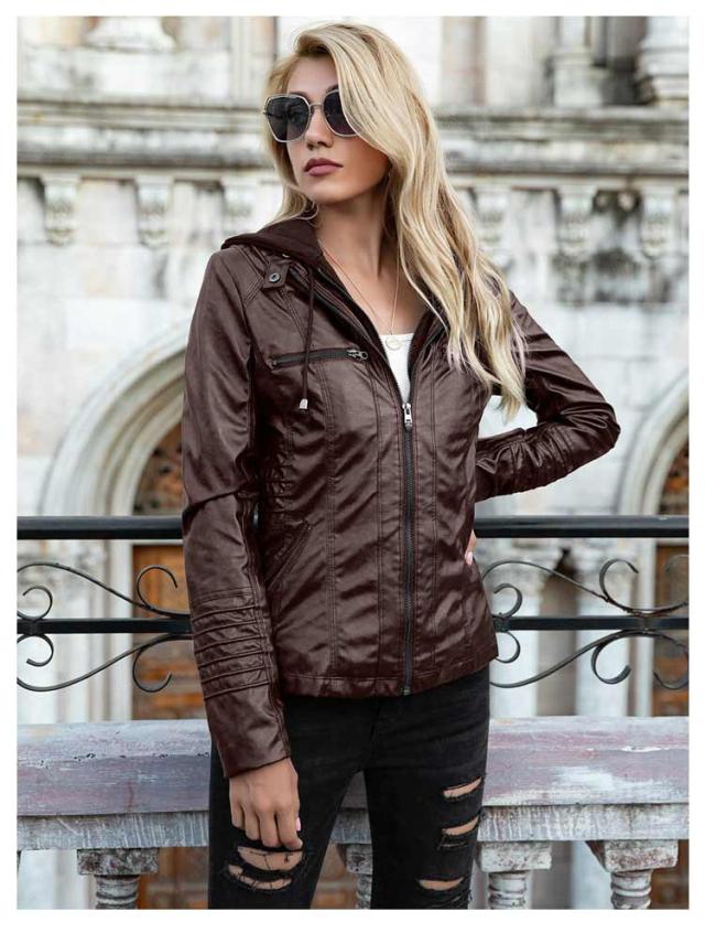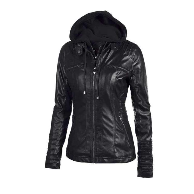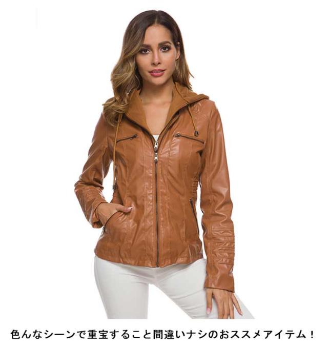 ライダースジャケット レディース 合皮ジャケット レザージャケット ブルゾン フード付き カジュアル 春秋冬 フェイクレザージャケット ダブルジップ パーカー PU 合皮 フェイクレザー ショート丈 大きいサイズ スリム 体型カバー 通勤 カッコイイ ギフト 送料無料