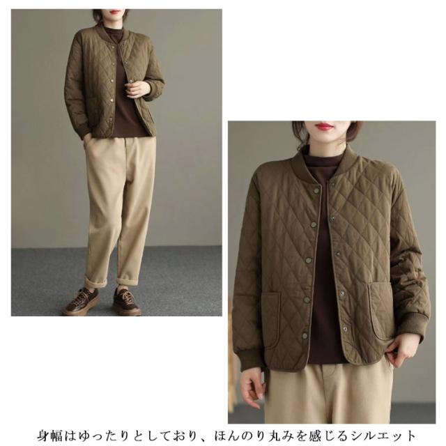 コート ジャケット レディース アウター ダウンジャケット 中綿 ダウン 長袖 羽織り 大きいサイズ 秋 上着 前開き ポケット 防寒 防寒対策 あたたかい 薄手 大きめサイズ 大きめ ゆったり 体型カバー おしゃれ かわいい きれいめ オフィス