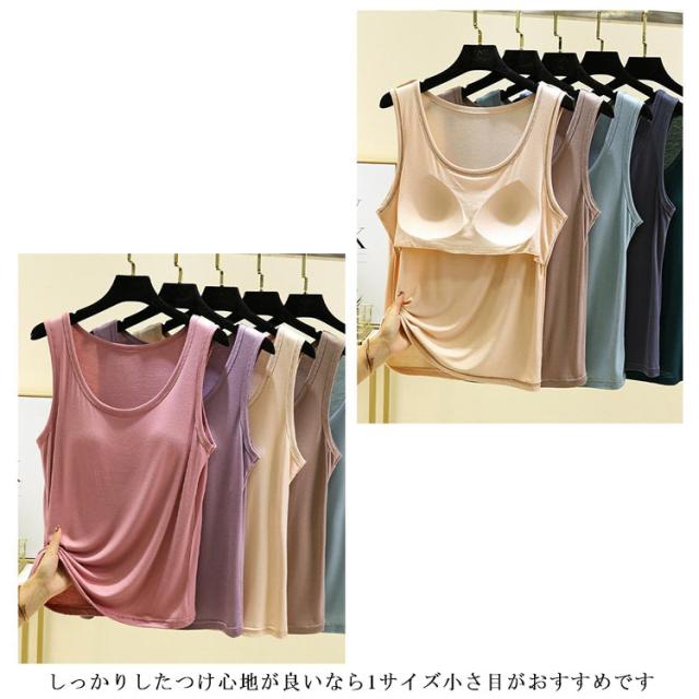 カップ付き タンクトップ アンダーゴムなし ブラトップ 肌着 下着 通気性 速乾 抗菌 ストレッチ 大きいサイズ 小さいサイズ 春 夏 秋 下着 通気性 ゆったり カジュアル 母の日 敬老の日 誕生日 プレゼント 柔らか 寝巻 寝間着 ブラ内蔵