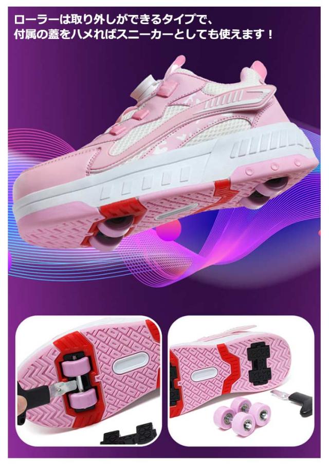 送料無料 ローラーシューズ ローラースケート 4輪 キッズ 大人 子供 スニーカー靴 レディース靴 女の子 男の子 子供用運動靴 スポーツ スニーカー 4輪式 ブラック ホワイト ピンク 20.5cm〜25cm
