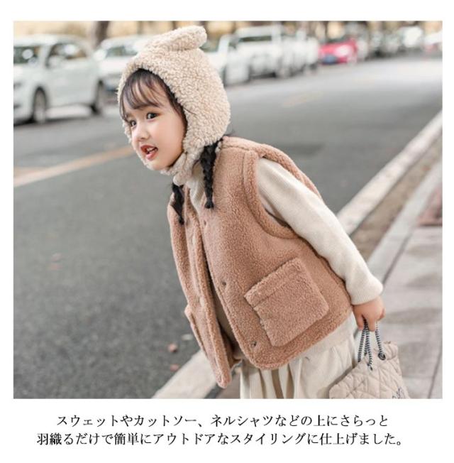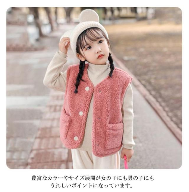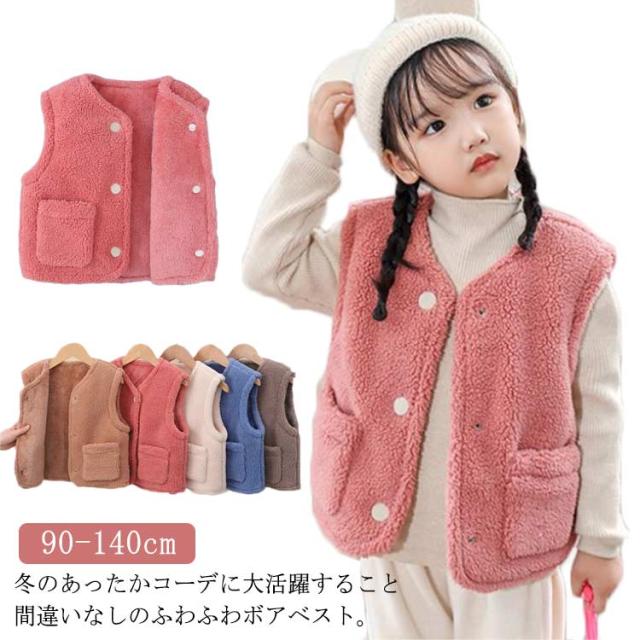 ボアベスト キッズ 前開き もこもこ 子供服 秋冬 女の子 男の子 ジレ ベスト トップス ポケット付き 無地 上着 アウター 防寒 暖かい 秋冬 羽織り 丸襟 防寒対策 おしゃれ 可愛い ふわふわ シンプル カジュアル 通園 通学