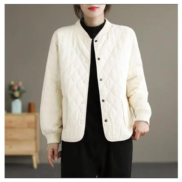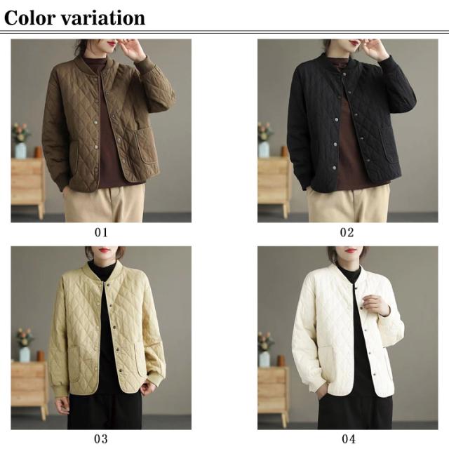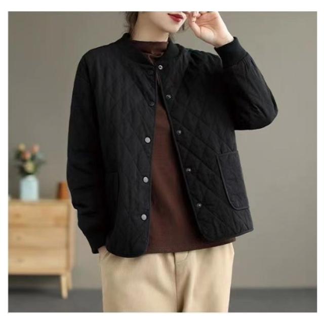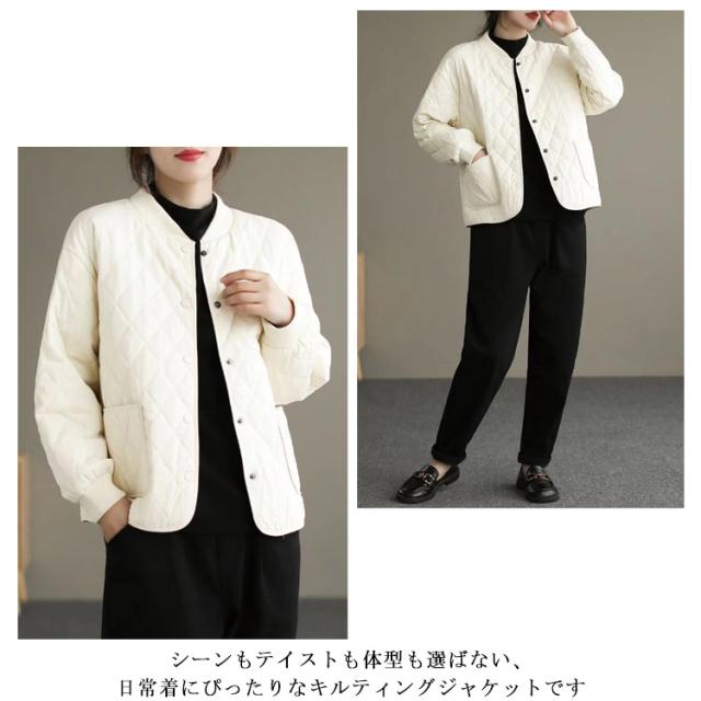 | 日常着にぴったりなアウター! 身幅はゆったりとしており、ほんのり丸みを感じるシルエット シーンもテイストも体型も選ばない、日常着にぴったりなキルティングジャケットです | |