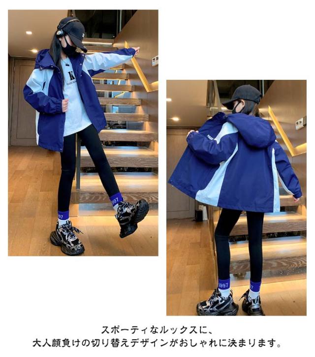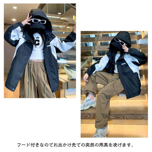キッズ マウンテンパーカー 配色 ライトアウター 薄手 ブルゾン ジャケット 子供服 女の子 男の子 中学生 高校生 春 秋 アウター ゆったり キッズアウター 大きいサイズ 撥水 防水 防風 通学 アウトドア 110 120 130 140 150 160 170 ユニセックス 【送無】