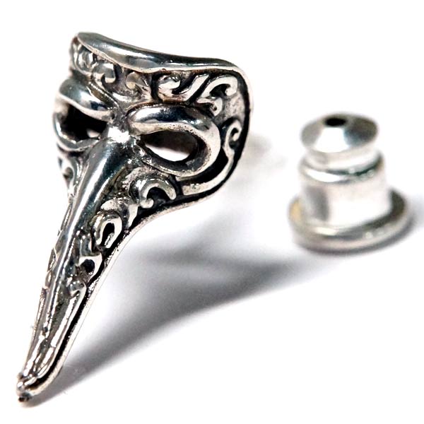 シルバー925 スタッドピアス イタリア ベネチアンマスク 仮面 ロングノーズ アイマスク メンズ レディース 【 片耳用 】