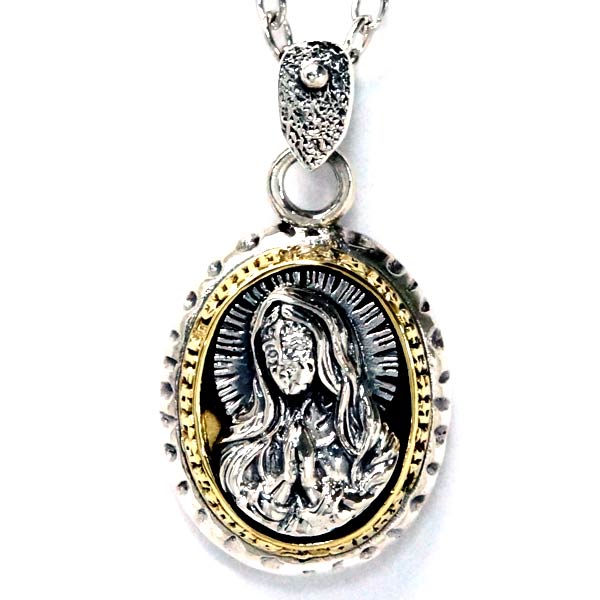 シルバー925 ペンダント ネックレス 聖母 マリア メキシカンスカル 薔薇 バラ 花 フラワー ゴールド メンズ
