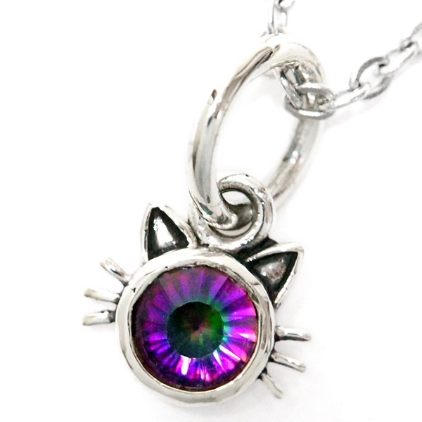 猫 キャット ミスティックトパーズ 髭 猫耳 レディース シルバー925 ペンダント ネックレス