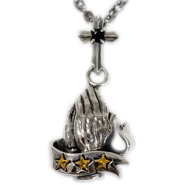 聖母マリア お祈り 十字架 クロス 星 スター オニキス ペンダント ネックレス