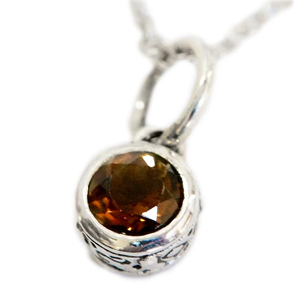 スモーキークォーツ パワーストーン ブラウン 幾何学模様 silver925 メンズ ミニ ワンポイント ペンダント ネックレス シルバーアクセサリー