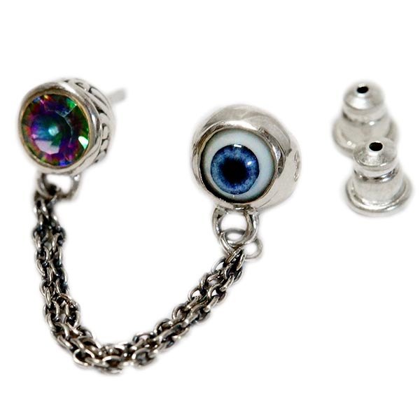 目玉 ガラス ミスティックトパーズ 2穴 チェーン ピアス