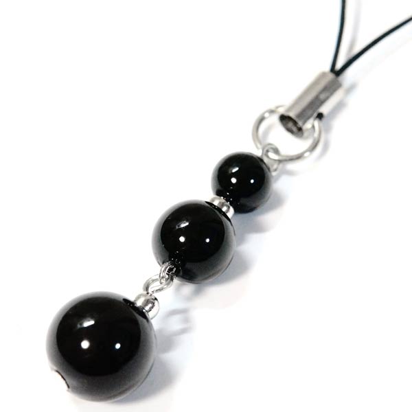 オニキス 黒瑪瑙 天然石 3連 パワーストーン メンズ レディース ユニセックスデザイン 携帯 スマホ ストラップ キーホルダー アクセサリー