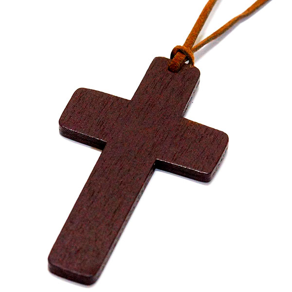 クロス 十字架 ブラウンカラー ウッド 木 プレート型 メンズ レディース ペンダント ネックレス 【ブラックレザー紐付き】