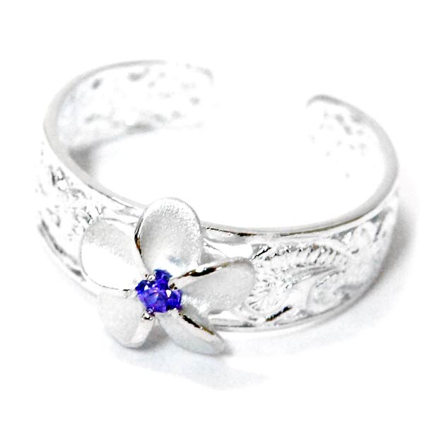 ハワイアンジュエリー トゥーリング プルメリア 花 パープルジルコニア カレイキニ 波 透かし彫り レディース シルバー925