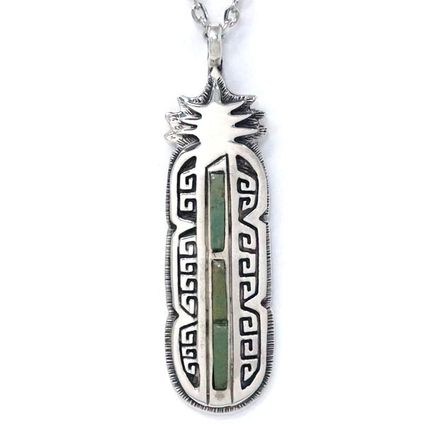 インディアンジュエリー ペンダント ネックレス 天然石 グリーンターコイズ トウモロコシ 水 フェザー 羽 シルバー925