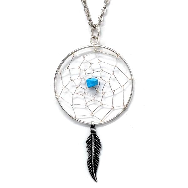 インディアンジュエリー ペンダント ネックレス 天然石 ターコイズ ドリームキャチャー 網 フェザー 羽 メンズ シルバー925