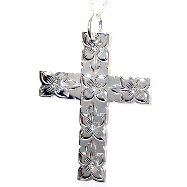 ハワイアンジュエリー ペンダント ネックレス クロス 十字架 ワイド幅 プルメリア 花 メンズ シルバー925