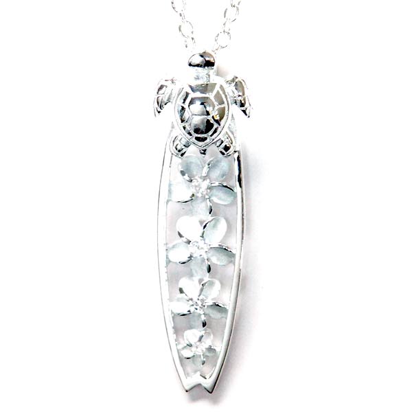 ハワイアンジュエリー ペンダント ネックレス サーフボード ホヌ ウミガメ プルメリア 花 クリアジルコニア シルバー925