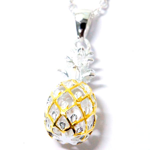 Mサイズ ハワイアンジュエリー ペンダント ネックレス パイナップル フルーツ 網目透かし柄 イエローゴールド レディース シルバー925