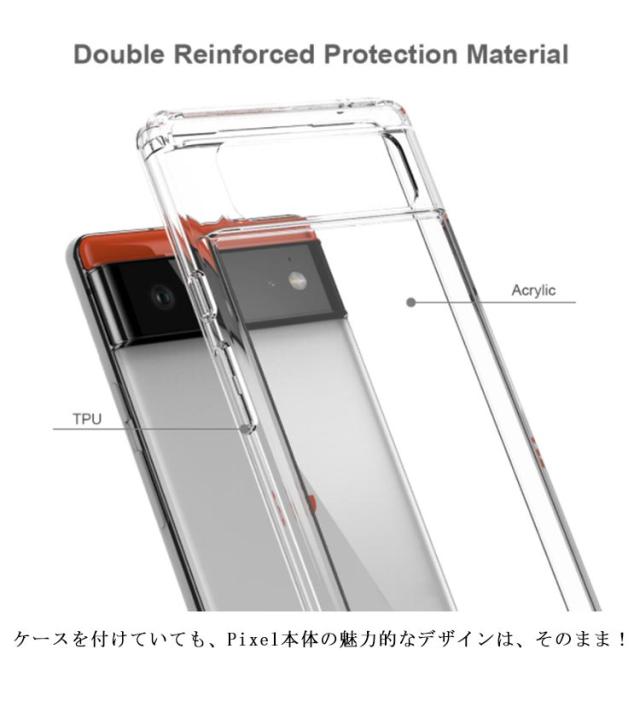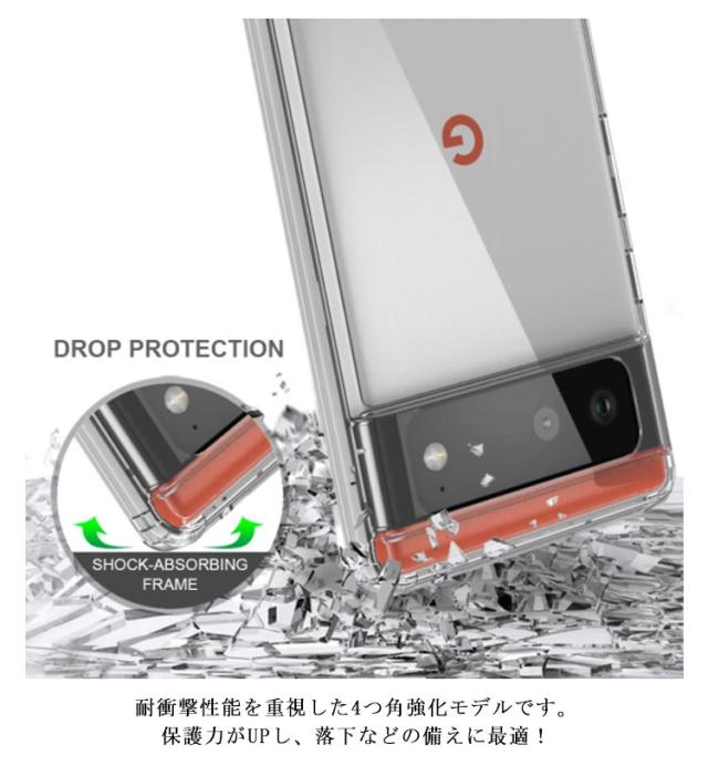 | 【TPU+PC シンプルな透明ケース】 【コーナーガードタイプ】 耐衝撃性能を重視した4つ角強化モデルです。 保護力がUPし、落下などの備えに最適! ケースは、透明クリアなソフトTPU+PC素材となっており、シリコンのように強く柔軟な素材が落下時の衝撃を緩和し、Pixel本体を守ってくれます。 手に収まるちょうど良いサイズ感で、コーナー部分が滑り止めのような役割をしてくれます。 ケースを付けていても、Pixel本体の魅力的なデザインは、そのまま! ケースを付けていることにより、液晶画面や、カメラレンズを保護してくれます。 ケースを付けたままのワイヤレス充電(Qi)が可能です。 | |