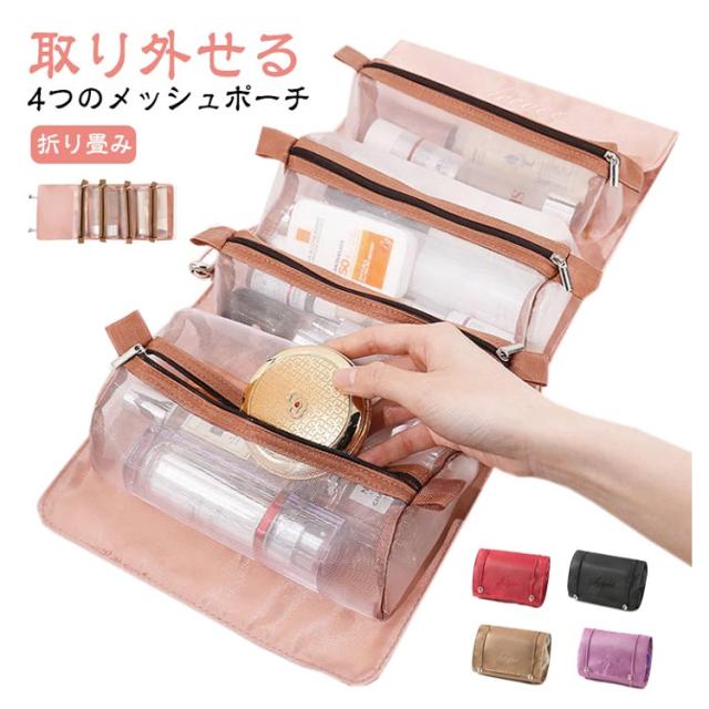 トラベルポーチ 化粧ポーチ 小物入れ レディース 多機能 旅行 お泊り 小さめ 大容量 可愛い 便利 メッシュ 吊り下げ 大容量 おすすめ レディース オシャレ ピンク グリーン ブラック カーキ ワイン パープル プチプラ 韓国ファッション