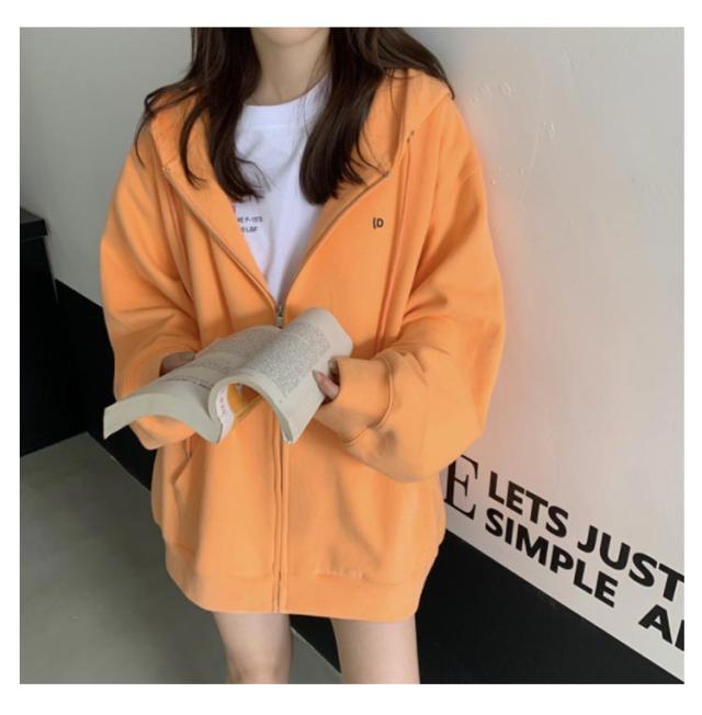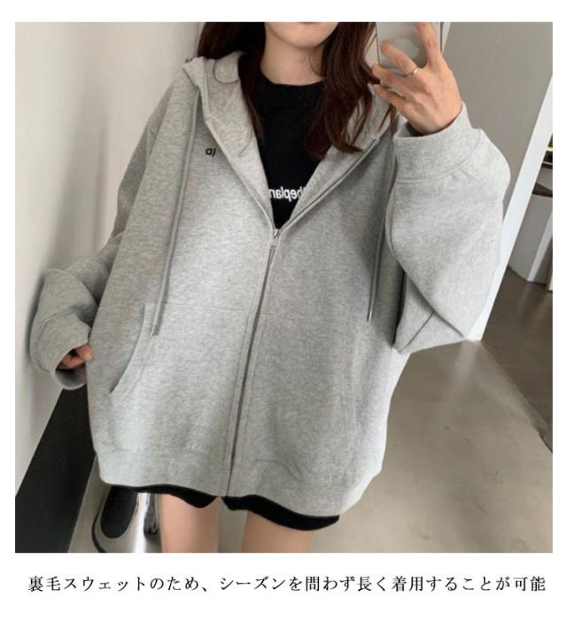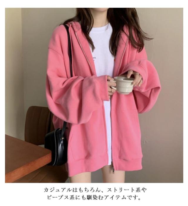 スウェット パーカー ロング ジップアップパーカー 裏毛 レディース スウェットパーカー ワンポイント フード付き オーバーサイズ 薄手 アウター 羽織り 春 秋 冬 ライトアウター 無地 秋物 秋服 長袖 トップス カジュアル ピンク オレンジ 【送無】