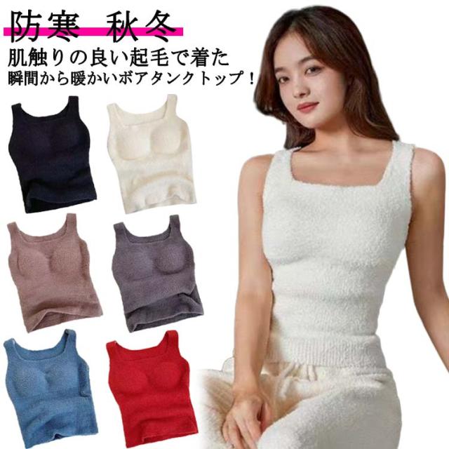 ボアタンクトップ レディース 秋冬 あったかインナー ふわふわ ボア 発熱 厚手 肌着 下着 あったか 暖かい 伸びる 防寒 寒さ対策 発熱インナー 寒さ知らず 送料無料 防寒 ベスト 重ね着 冷え対策 部屋着 ノースリーブ カップ付 おしゃれ 冬用