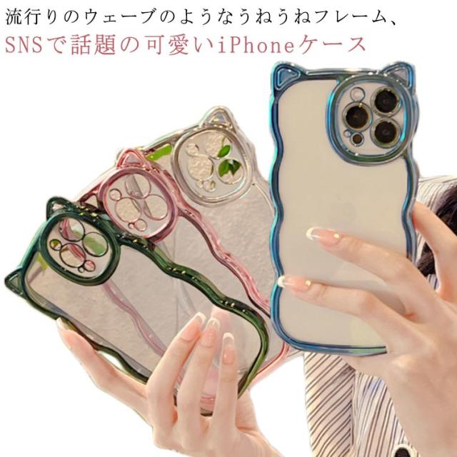 iPhoneケース うねうね なみなみ iphone15 iphone15pro max iphone15 iphone14 iphone13 猫耳 ケース メッキ シリコン 耐衝撃 かわいい スマホケース ウェーブ クリアケース クリア 透明 可愛い おしゃれ SNS 大人かわいい 女子 送料無料