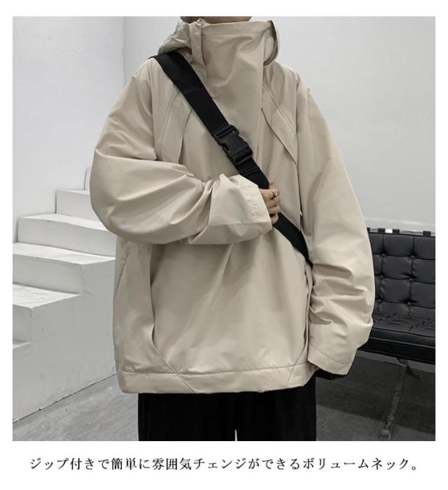 裏起毛・裏起毛なし パーカー メンズ ボリュームネック プルオーバー パーカー 撥水 防水 マウンテンパーカー トップス フード付き 送料無料 ハイネック 長袖 オーバーサイズ ビッグシルエットパーカー 大きいサイズ ゆったり カジュアル ストリート 春 秋 冬 男女兼用