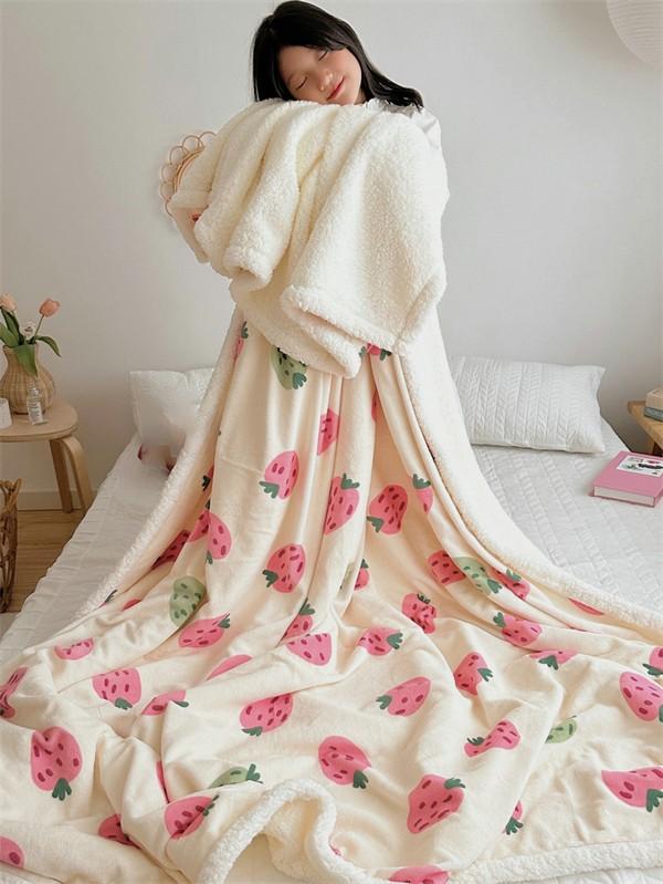 ブランケット 2枚合わせ 毛布 シングル 苺柄 イチゴ柄 ダブル 大判 あったか 暖かい 秋冬 冬用 合わせ毛布 ふわふわ もこもこ マイクロファイバー 掛け毛布 洗える お昼寝 ベッド ソファー 膝掛け カバー ひざ掛け インテリア 寝具 マルチカバー かわいい ピンク