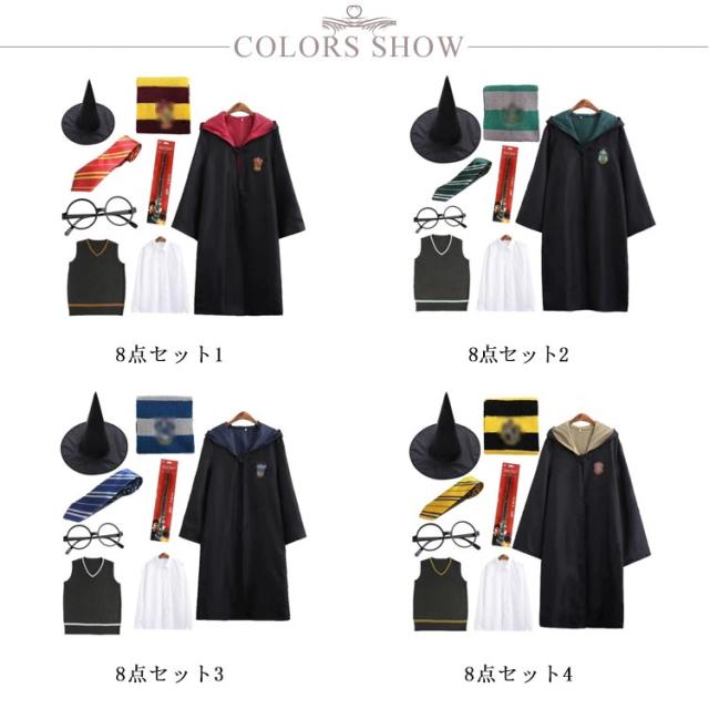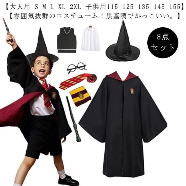 大人用 子供用 コスプレ 大人 キッズ こども 子ども 8点セット 黒 ブラック マント ハロウィン 衣装 ローブ 魔法師 コスプレ 仮装 コスチューム 杖 大人 男女兼用 マント フード 衣装 ハロウィン イベント