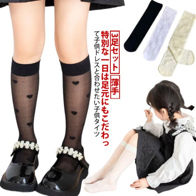 子供用 ハイソックス 子ども キッズ こども タイツ 薄手 3足セット メッシュ くつ下 靴下 膝丈 膝上 ニーソックス オーバーニーソックス ニーハイソックス ロング 可愛い かわいい キュート シンプル 女の子 女児 送料無料