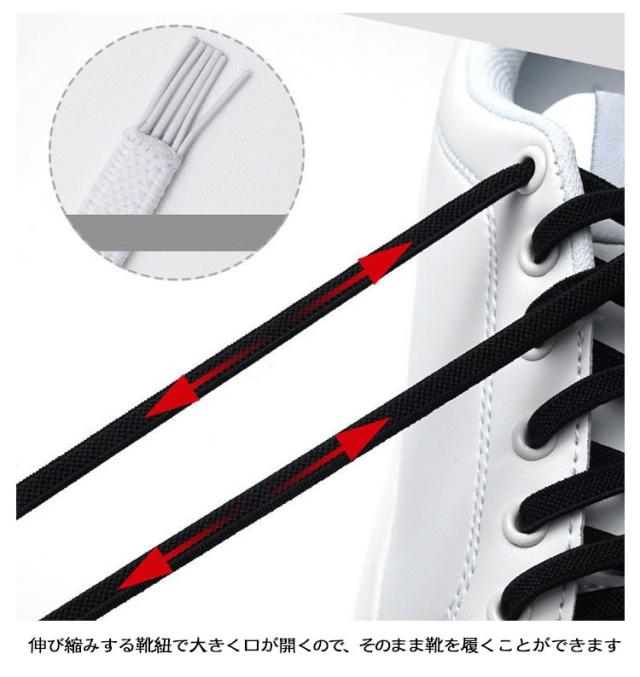 | 靴ひもを結んだりほどいたりが不要!靴が脱ぎやすく履きやすくなります。 靴紐を結ぶ時間からの解放!通勤時や登校時、意外と時間が取られる靴紐結びから解放されます!また靴紐結び等の細かい作業が苦手な方にも、ご年配の方にもおすすめです。 伸縮性のある素材で靴紐の圧力を均等に分散。それにより疲れにくくなり、より快適に。 伸び縮みする靴紐で大きく口が開くので、そのまま靴を履くことができます 伸び縮みする靴紐は毎日使ってもくたびれにくく、伸縮性のも損なわれません。 どんな靴にでも合わせられるように豊富なカラー展開をご用意しました。 | |