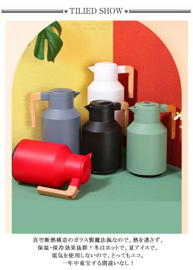 魔法瓶 1リットル ガラス製 1L 魔法瓶 ポット 卓上ポット 保温 保冷 北欧 テーブルポット ガラス魔法瓶 真空断熱 まほうびん ウッドハンドル コーヒーポット 水筒 敬老の日 結婚 引越し 祝い 新生活 ギフト 省エネ 節電 グッズ