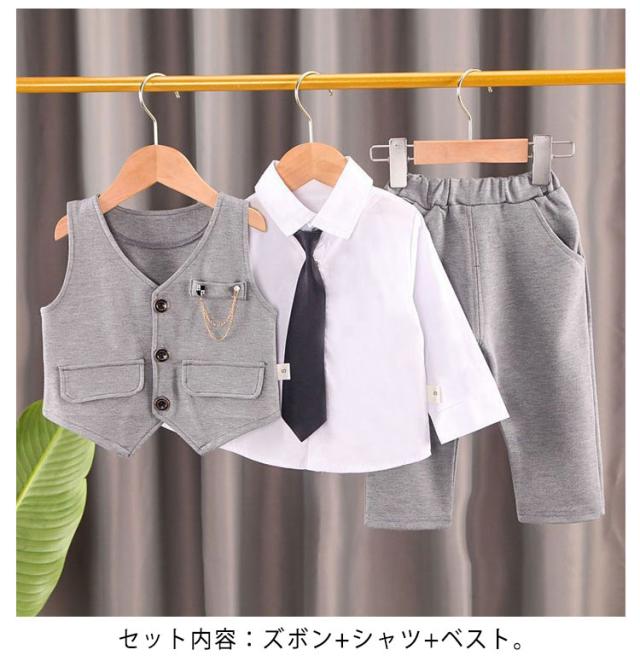 ベビースーツ フォーマル 男児スーツ スーツ 男の子 キッズ フォーマル 子供 スーツ 3点セット ベスト シャツ 送料無料 紳士服 男の子 シャツ+ズボン+ベスト ゴムウェスト子供服 七五三 入学式 卒業式 初節句 出産祝い 七五三 卒園式 結婚式