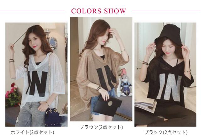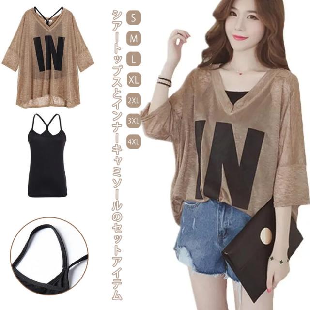 シアープルオーバー レディース 半袖tシャツ tシャツ&キャミソール 2点セット トップス 無地 カジュアル ビッグTシャツ オーバーサイズ Tシャツ 大きい ゆるい ビックサイズ シンプル