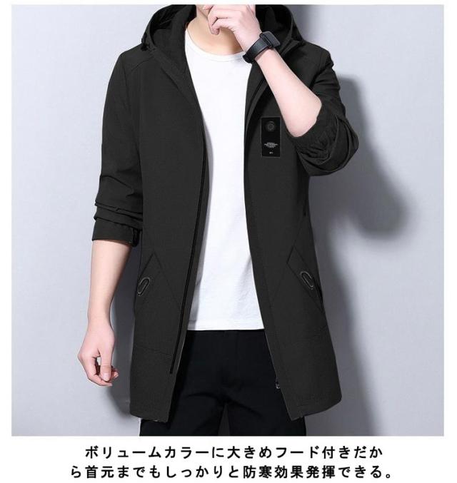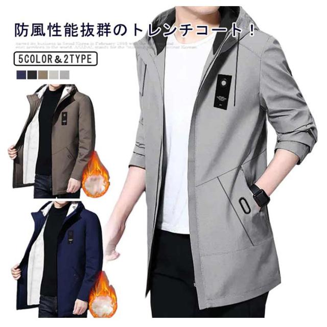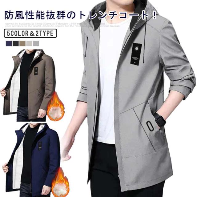 メンズ スプリングコート ジャケット フード付き 春 秋 冬 裏起毛あり/なし トレンチコート ミリタリーコート ミリタリージャケット アウター 前開き 防風 ゆったり 大きいサイズ 防寒 通勤 通学 ビジネス