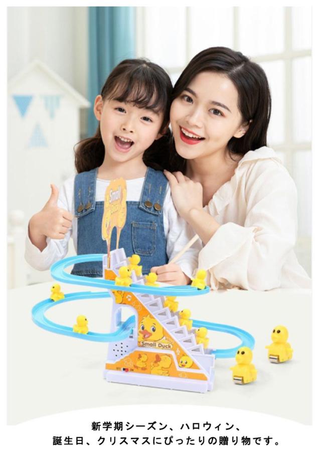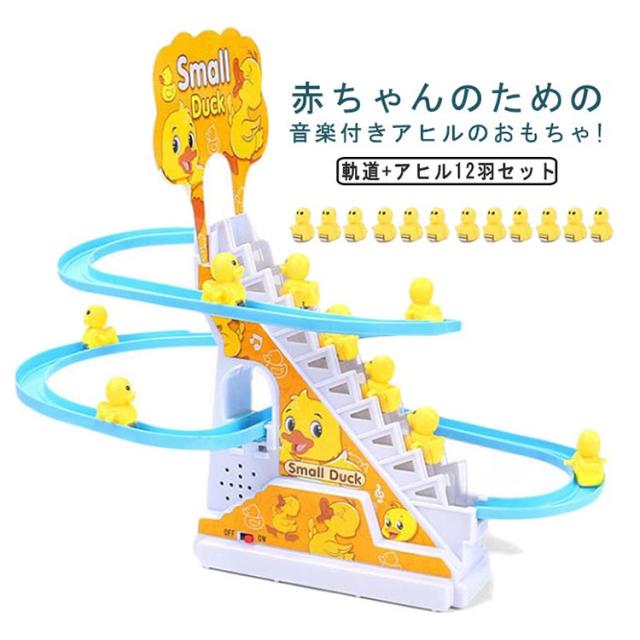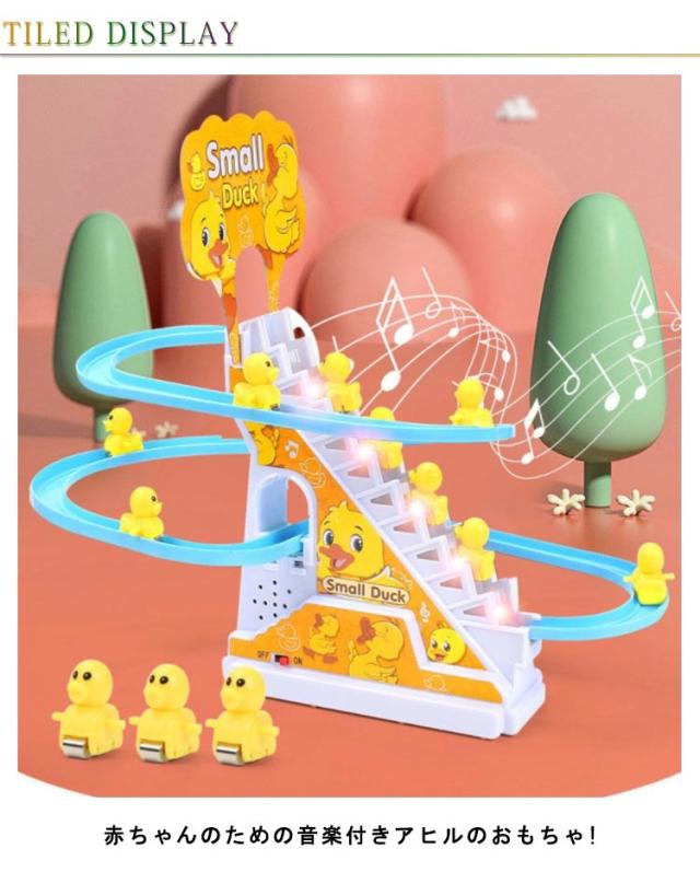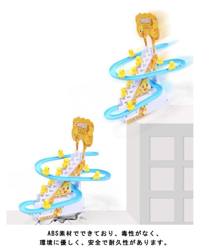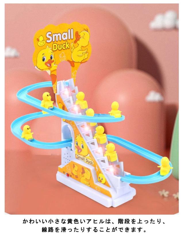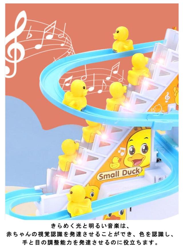 電気アヒル 階段おもちゃ ダック軌道おもちゃ 滑り台 屋内遊具 子供用 知育玩具 男の子 女の子 登山階段おもちゃ ライト 音楽 12羽のアヒル 自動的に階段を上り 軽快な音楽 面白い 萌え